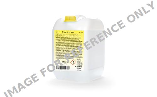Citroenzuur 50 % is een vloeibaar concentraat voor efficiënte citrothermische desinfectie, reiniging en ontkalking van hemodialyis-machines.